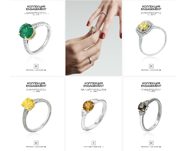 Все эти великолепные камни искусно обрамлены сиянием прозрачных бриллиантов, что делает каждое кольцо настоящим произведением искусства.