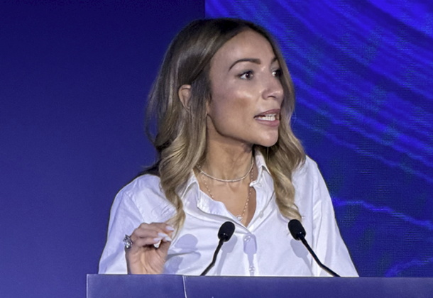 На фото — президент WDC Фериэль Зеруки на пленарном заседании КП в Дубае.