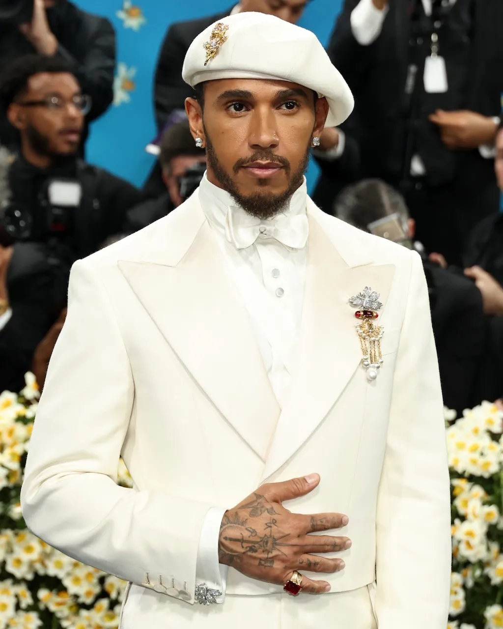 Льюис Хэмилтон появился на балу Met Gala 2025 5 мая 2025 года в Нью-Йорке в бриллиантовых запонках. (Getty Images)
